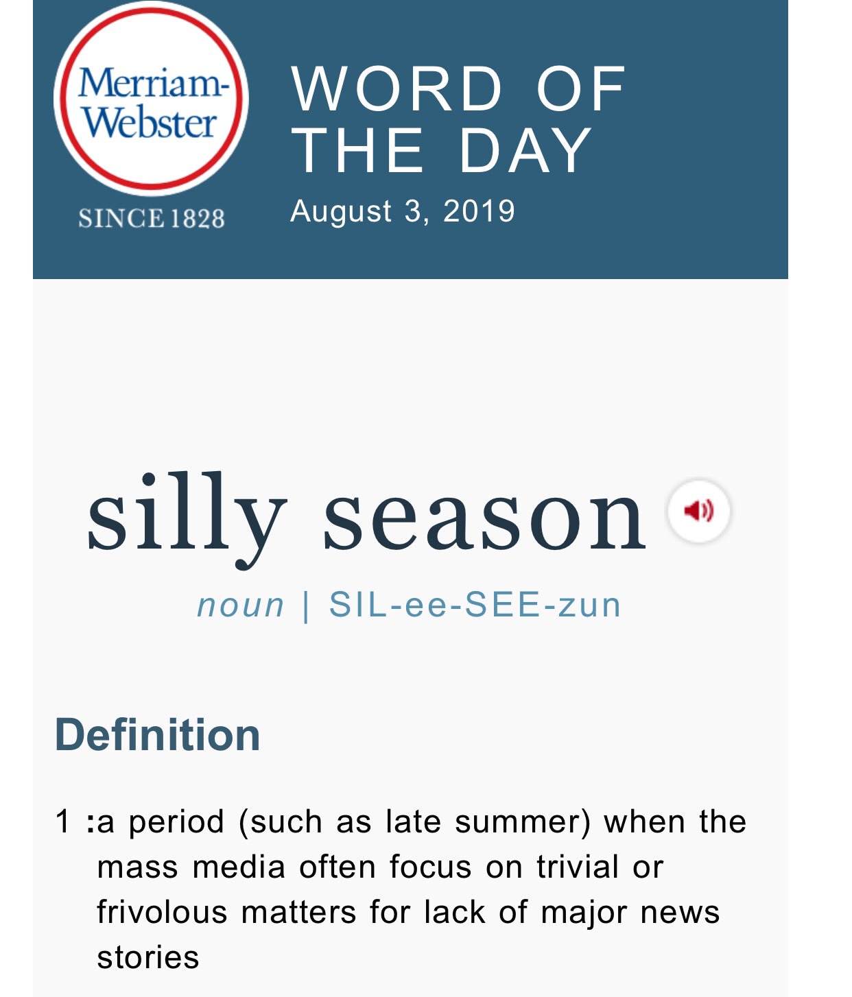 Word Of The Day Silly Season Merriam Webster In 2021 Word Of The Day Words Uncommon Words