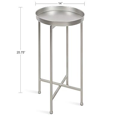 Buy Kate And Laurel Celia Round Metal Foldable Accent Table With Tray Top 14 X 14 X 25 75 Silver Online In Germany B084wm7zfm