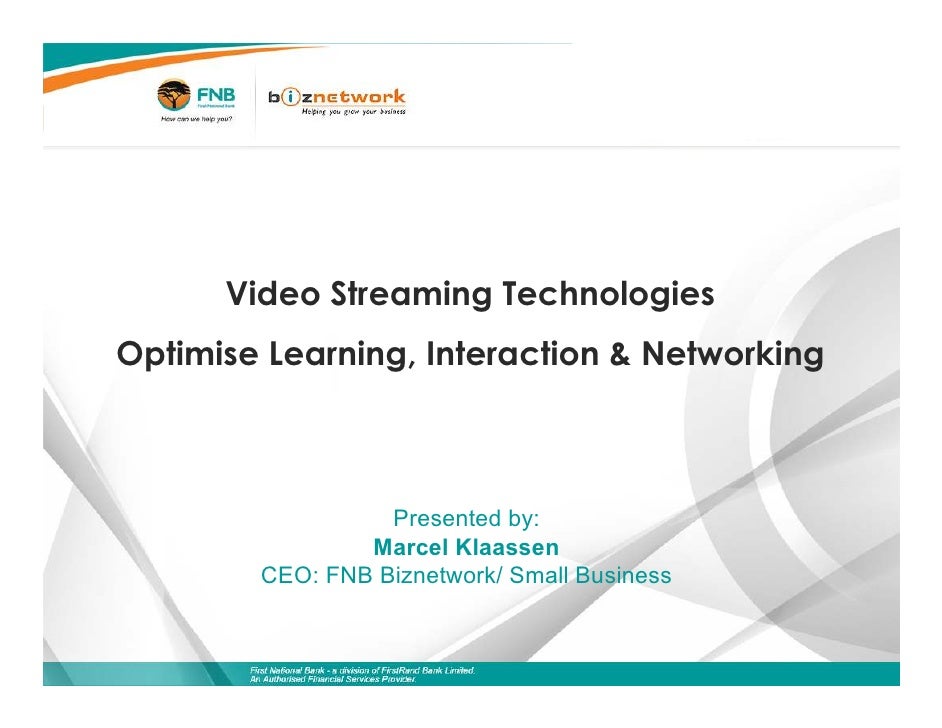Video Streaming Technologies Marcel Klaasen Fnb Biznetwork